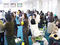 そのような時に大切なことは、一方的な母親へのお説教や、こうあるべきという押し付けではなく、日々の子育ての中で戸惑っているお母さん方の心をやわらかくほぐし、目の前のことで窮屈になりがちな心の視野を広げ、自分や子どもをはじめ、周囲の人の違いやよいところを自然にみることができる心を取り戻すことです。そこで「心と心の握手」というゲームを参加された方全員で行いました。